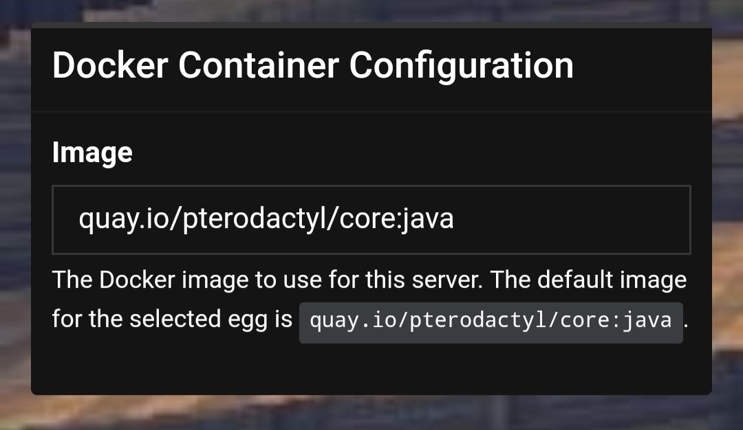 Aby użyć obrazu dla serwera w panelu, po prostu wpisz jego nazwę w polu Docker Container Configuration, w z akładce Startup. W przedstawionym przykładzie, byłoby to mojajava:1.